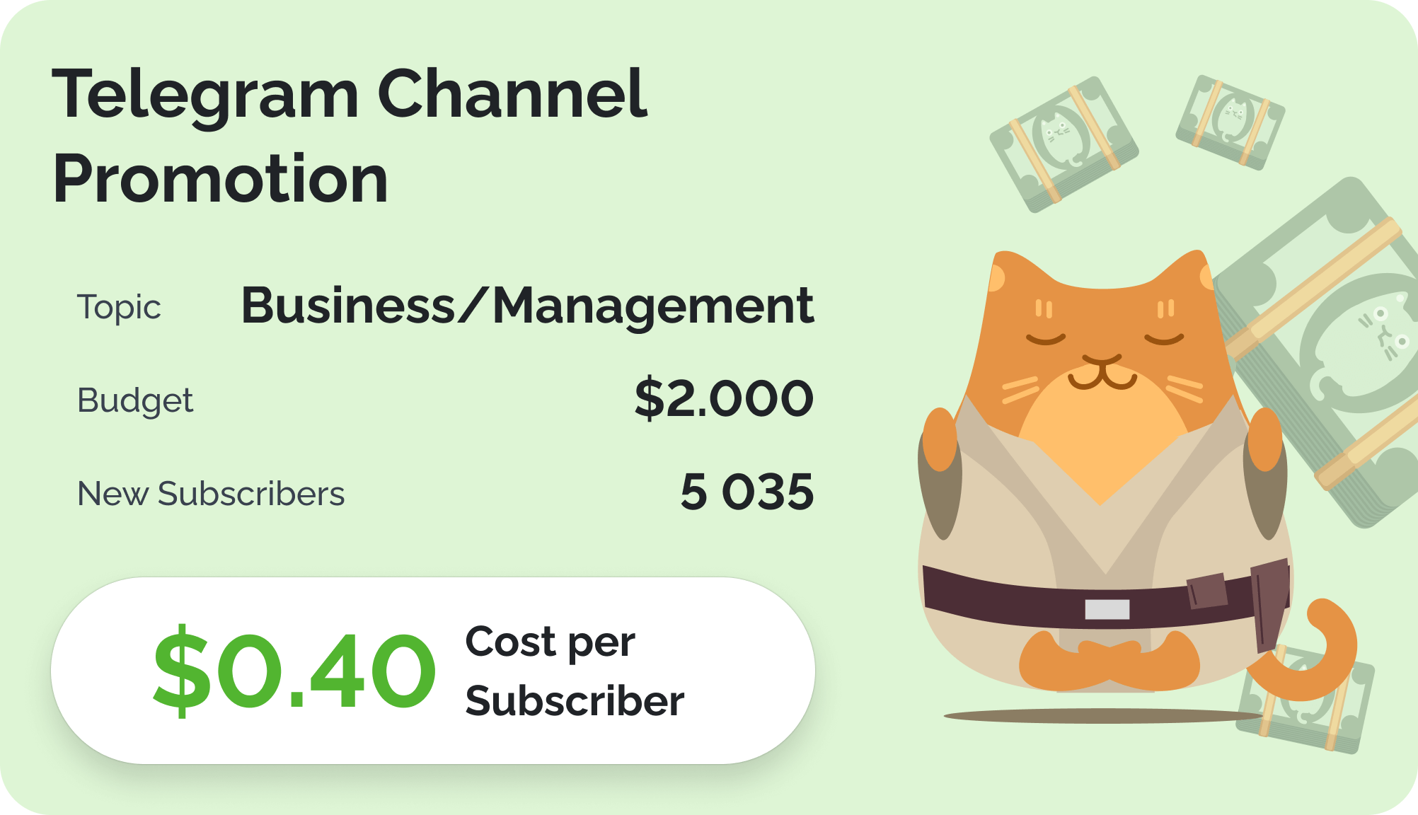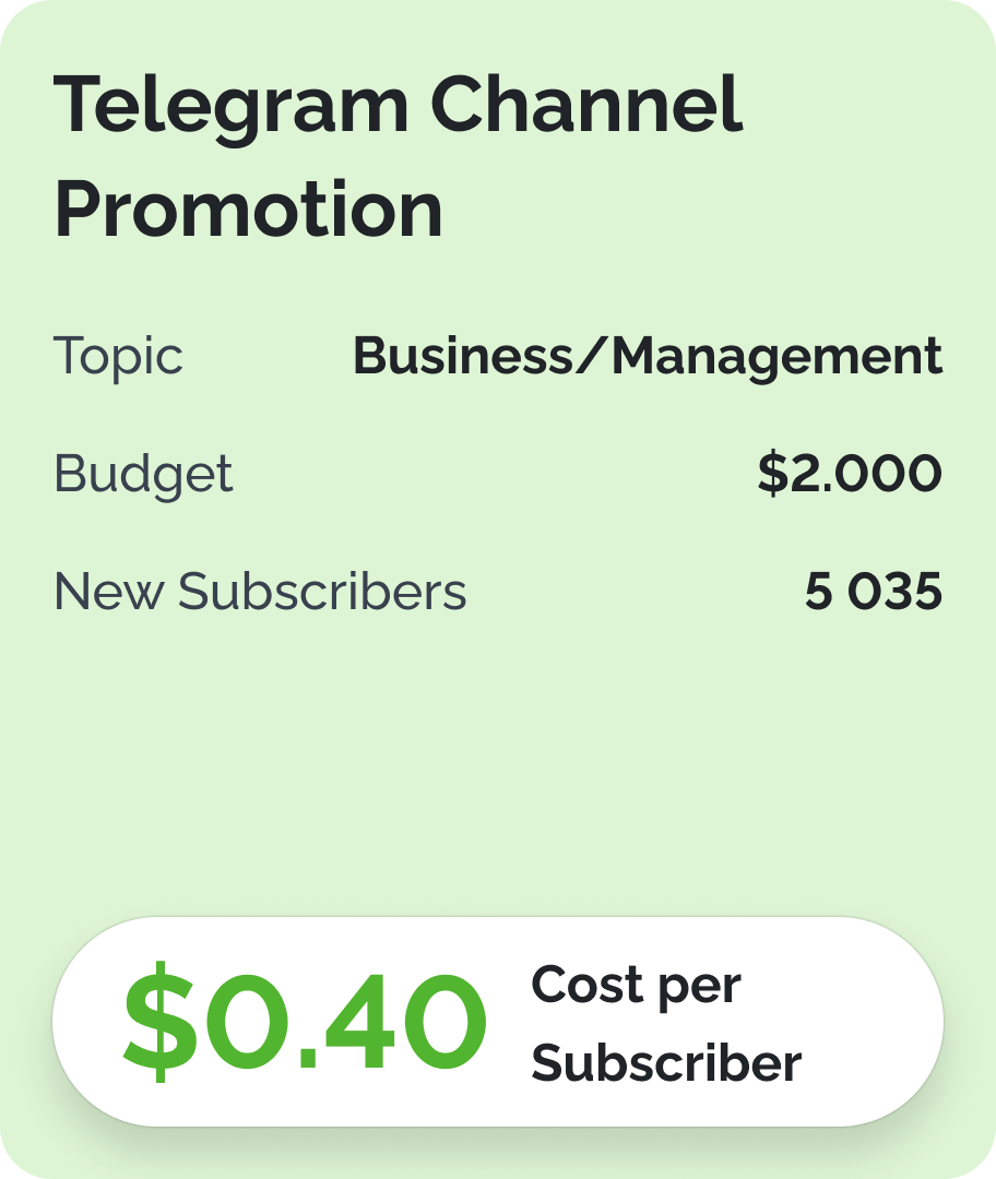 The services of a personal manager are provided free of charge. 100% of the budget goes towards ad placements in Telegram channels.