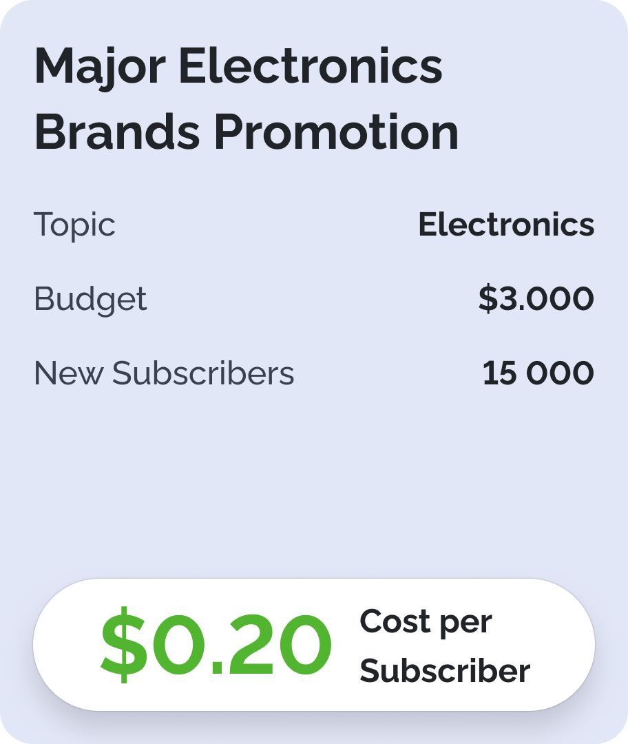 The manager will predict approximate link clicks, reach, and subscriber cost, considering your niche and your marketing goals.